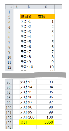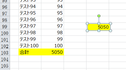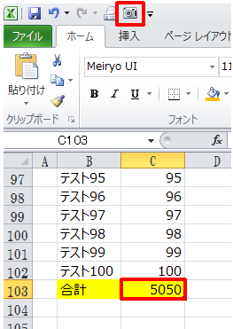 今回はカメラ機能を使って、スクロールしなくても最下行にある合計行を