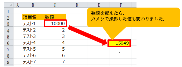 1.カメラで撮影したいセルを選択して、カメラボタンをクリックします。