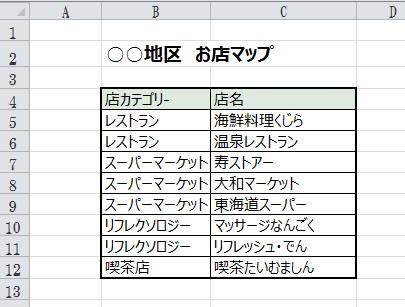 「店カテゴリー」項目を昇順で並べ替えると下図のようになりますが、