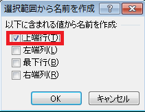 3.[選択範囲から名前を作成]ダイアログボックスで、