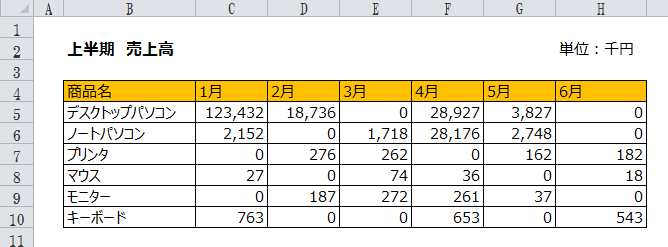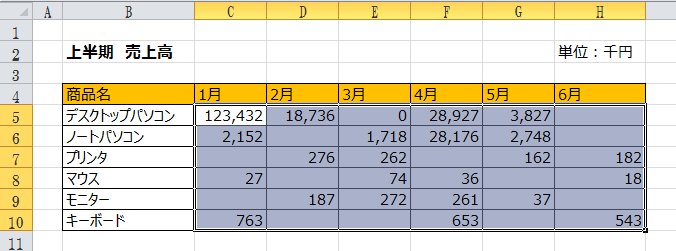 (例ではC5からH10セル)