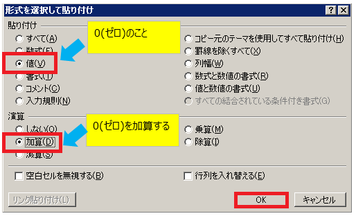 4.「値」と「加算」にチェックを入れ、「OK」をクリックします。