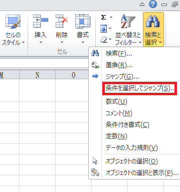 1.「B列」を選択し、「ホーム」タブの「検索と選択」から、