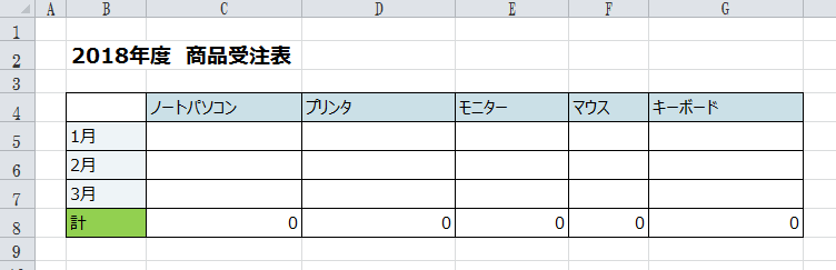 下図を例に、1月から3月のデータ部分を削除したい場合。