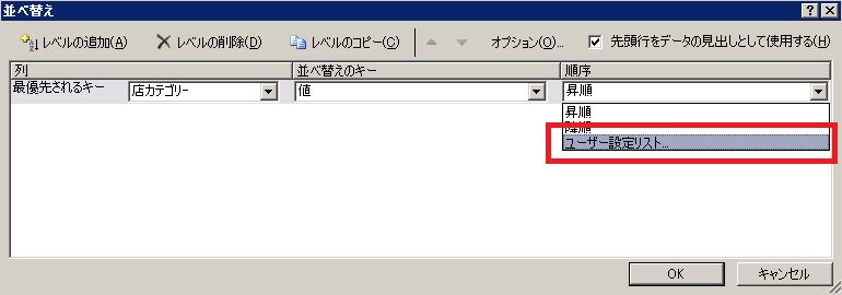 表1の範囲が選択されます。